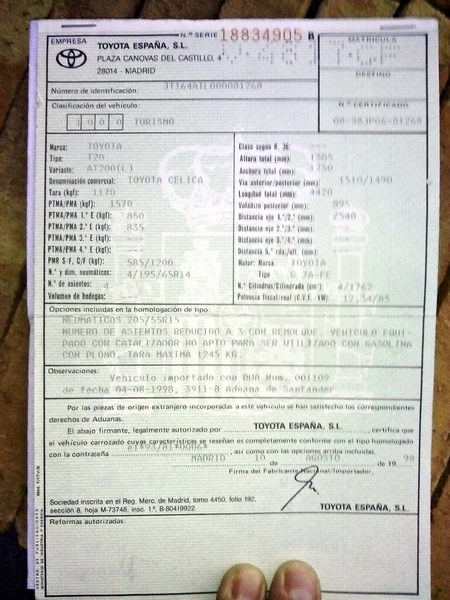 Prestaciones y consumos homologados